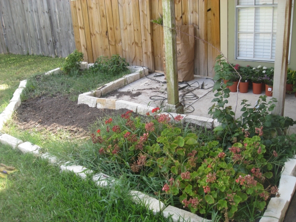 She managed to weed the entire area, purchase all of the dirt, mulch, and flowers, and plant all of the new flowers too.