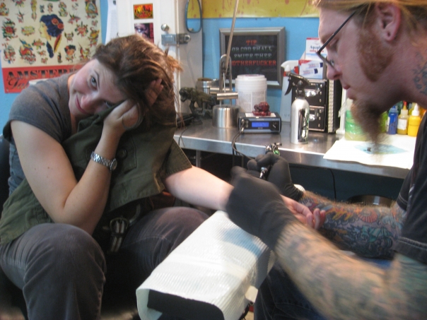 Tracy Getting her Tattoo