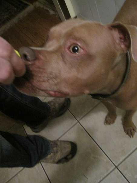 Playing with dog in residence