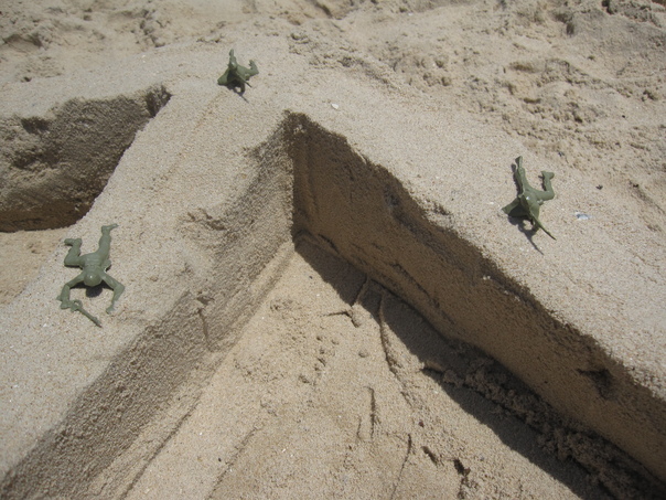 They made a sand fort so they could play GI Joe on the beach.