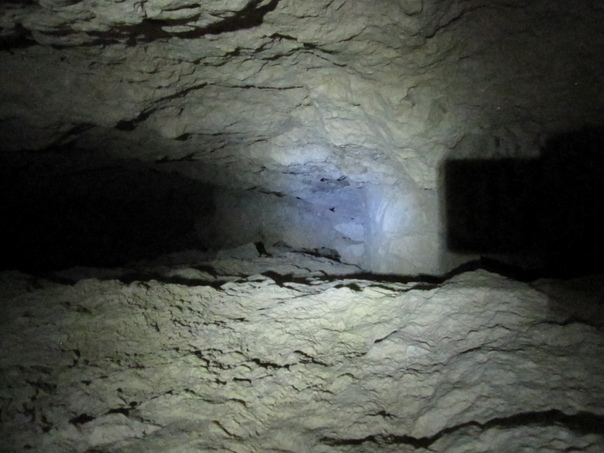 View of a tunnel with sandy rocks inside with passage for moving inside tunnel.