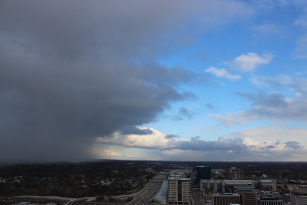 The clouds advancing on the city are part of a cold front moving in from the west.