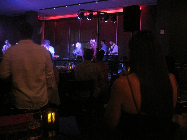 The mediocre band played to a less than enthusiastic crowd in the smoky bar.