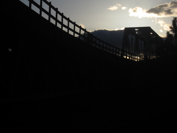 There is a dense cloud that looks dark grey and a thin cloud that is illuminated by the sun's light making it appear yellow. |