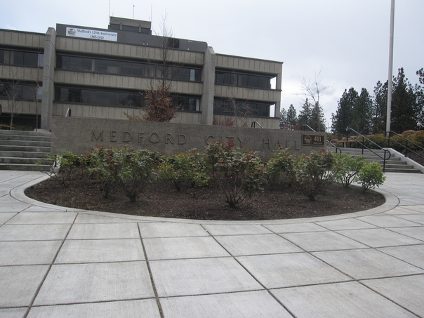 This is a photo of the Medford City Hall building, taken during the day. |