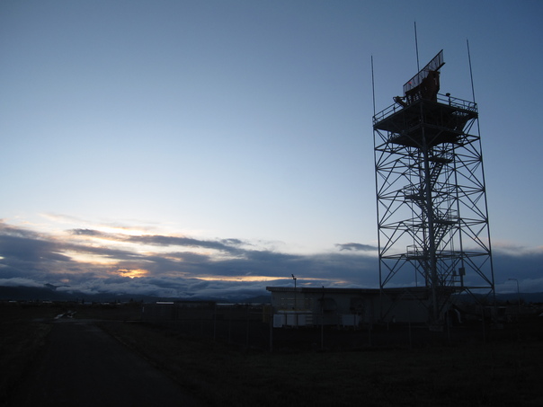 A tower is located next to the generator room near to the road. |
