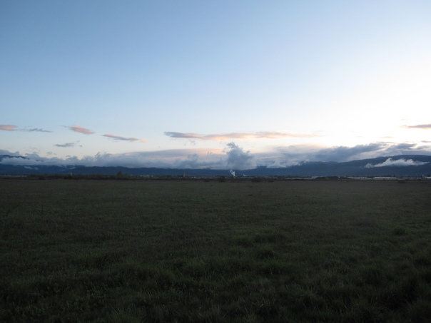 A view of open sky and field captured in camera in early morning hours. |