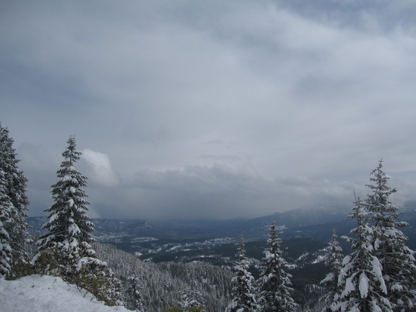 This is a picture of a snow covered hill, the trees are also covered in snow. |