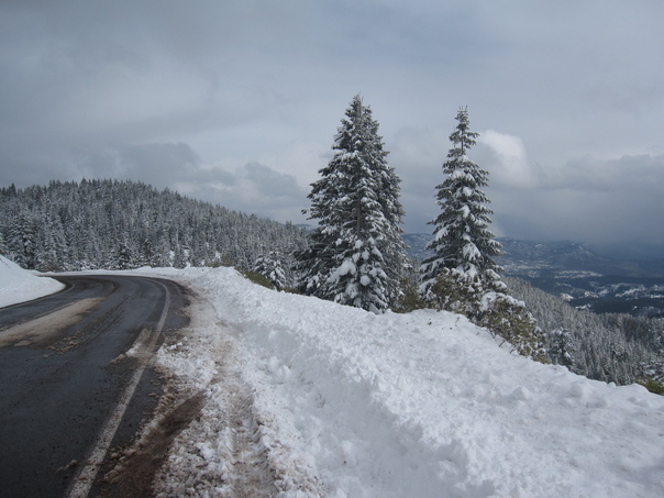 This picture is in trees and snow. They are very beautiful. |