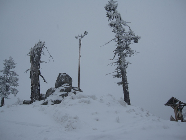 snow was coming down to this trees and mountains are all been filled |