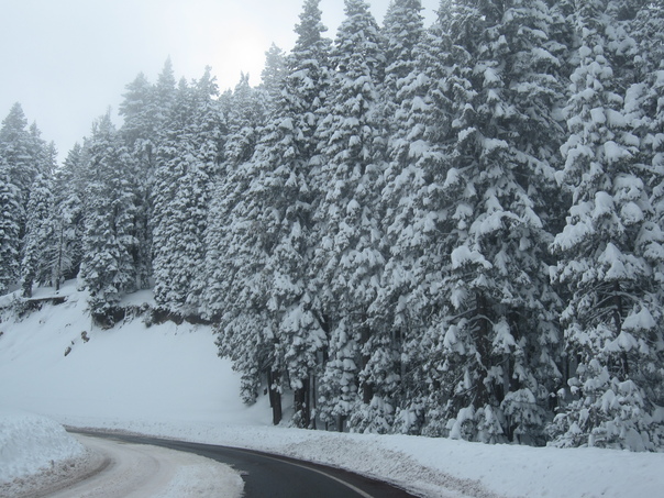 A beautiful scenery on the road side. A lot of ice rain is down on the trees. |