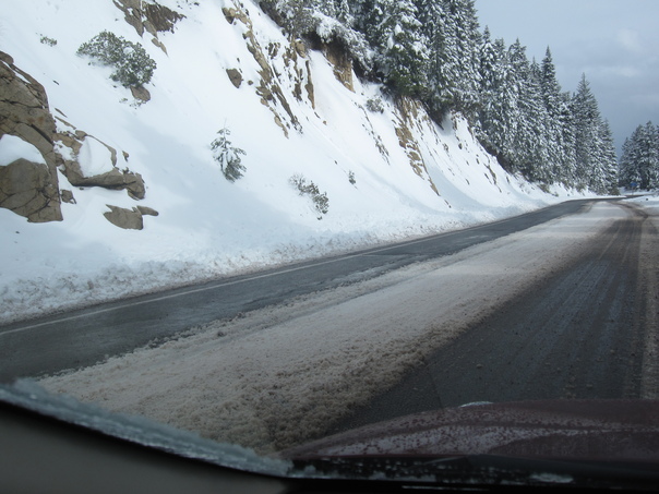 the snow is located in the side of the road |