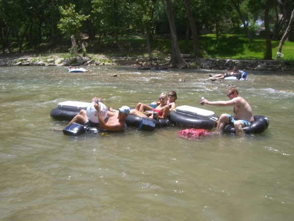 As promised, the bus departed just around 10am and made it to Abbott's Tube Rentals with only one stop in between. Everything was lined up for us completely ready to go and of course Kujda had the beer and mini-coolers handy for everyone just as he had promised.