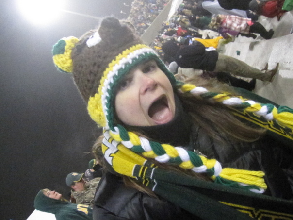 The brave fans withstood the bitter cold to cheer their team onto victory in the frigid weather.
