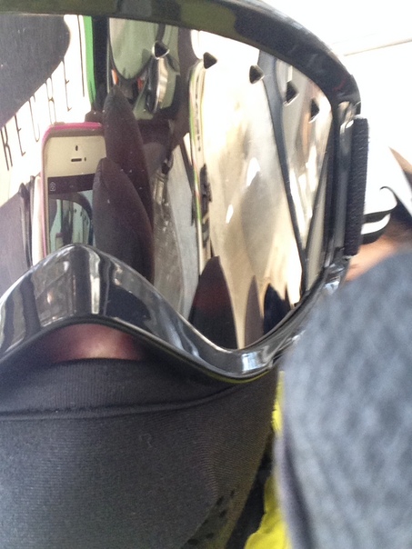 a close up photo, this person is ready to have fun in the snow!