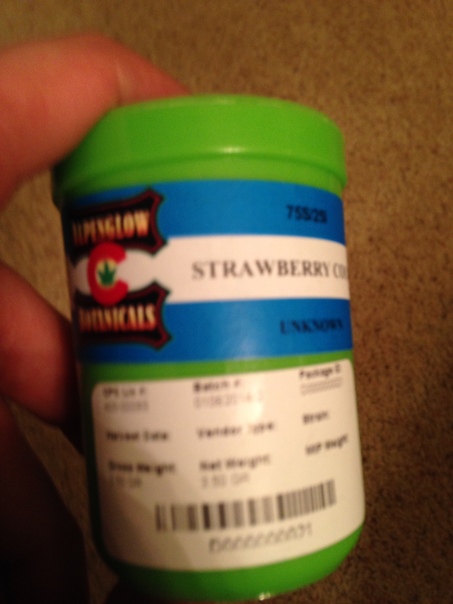 There is a picture of a blue, green, and other colors medicine bottle.