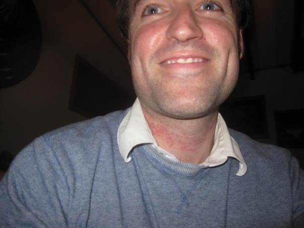 A middle age man wearing a blue sweatshirt is smiling at the camera. |