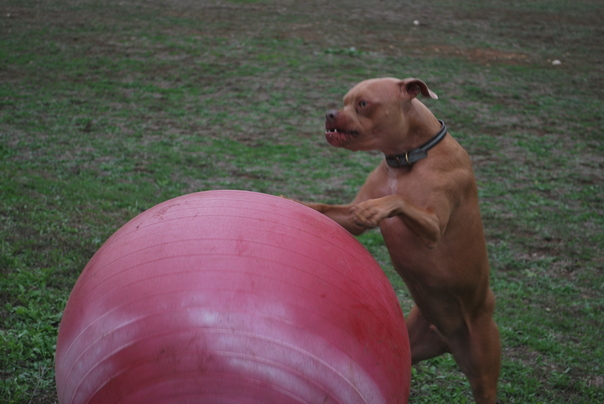 Caroline and I took her mom and Brewster out to Walnut Creek Park in North Austin. We had been wanting to give Brewster the opportunity to play with the giant exercise ball outside just to see how he would treat it.