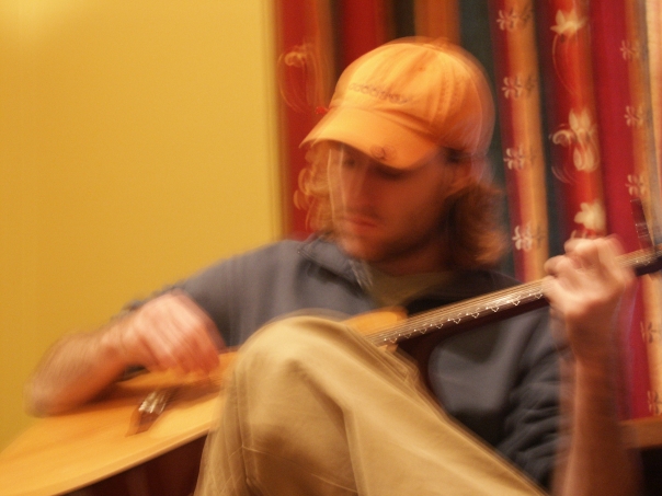 A bunch of pictures that either Tisa, or one of my flatmates at the Warm Chubby (my Dunedin flat) took of me playing my guitar in my room.