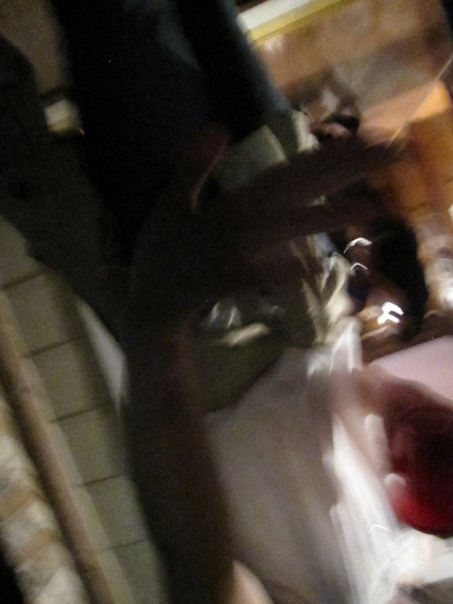 blurry, red, fingers, upside down, hand, covering, white, person, legs, cup,