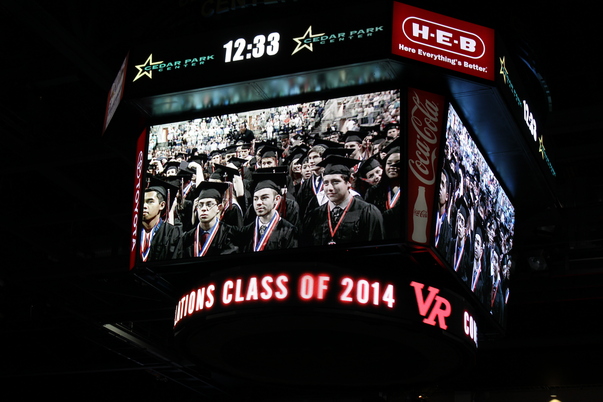 A photo of a segment of the graduating class of 2014 being displayed.