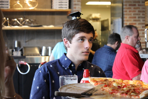 This guys is eating food after he graduated from school