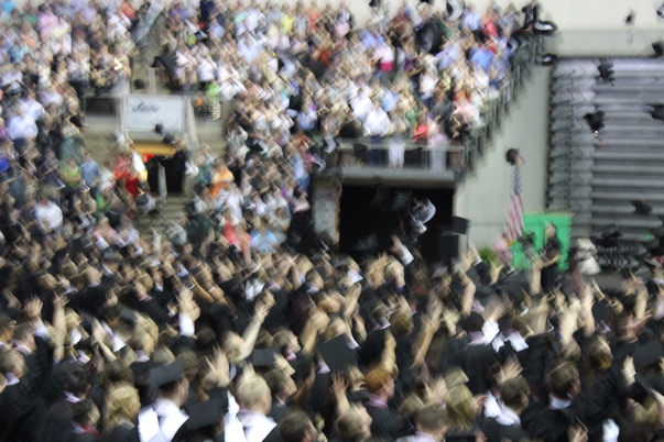 The presence of many graduates is felt in the room with their excited energy at high levels.