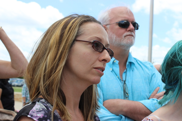 woman with sunglasses on looking to her left
