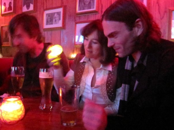 People having great fun inside a bar during night time with glass of beers