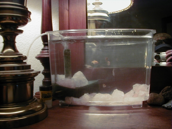 tank with fish and water with white rocks at the bottom |
