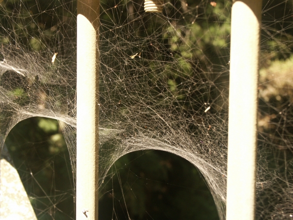 This is a very complex, tangled mess, of a creepy spider web.