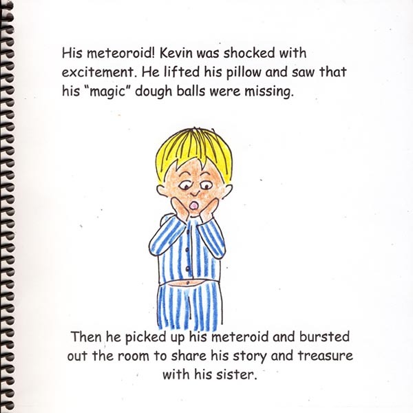 His meteoroid! Kevin was shocked with excitement. He lifted his pillow and saw that his "magic" dough balls were missing.