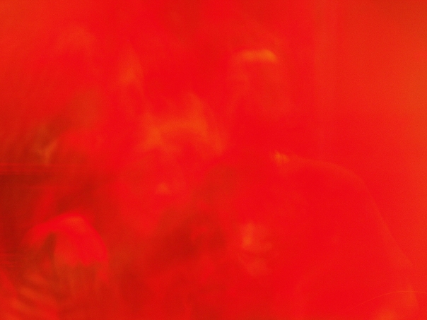 The brilliant red paint swirled into an elusive pattern like the imprint of a mysterious face.