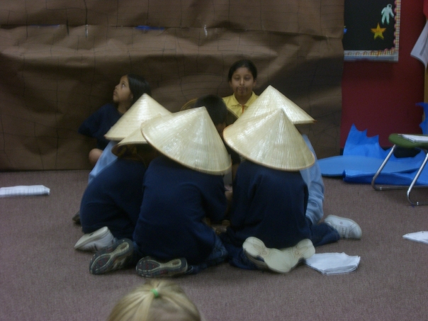 Tracy asked me to come up to her elementary school so that I could shoot some photos and videos of the various grades end of year performances. I had managed to get some asian hats and mustaches from the Oriental Trading company just a few days earlier and of course brought them as a surprise.