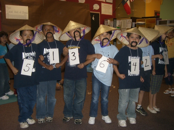 Tracy asked me to come up to her elementary school so that I could shoot some photos and videos of the various grades end of year performances. I had managed to get some asian hats and mustaches from the Oriental Trading company just a few days earlier and of course brought them as a surprise.