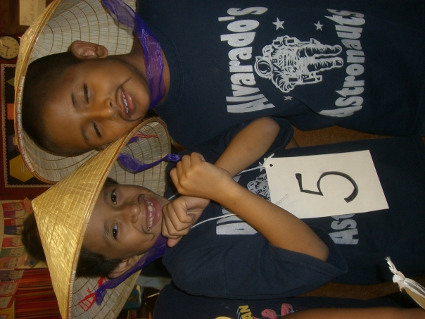 Tracy asked me to come up to her elementary school so that I could shoot some photos and videos of the various grades end of year performances. I had managed to get some asian hats and mustaches from the Oriental Trading company just a few days earlier and of course brought them as a surprise.