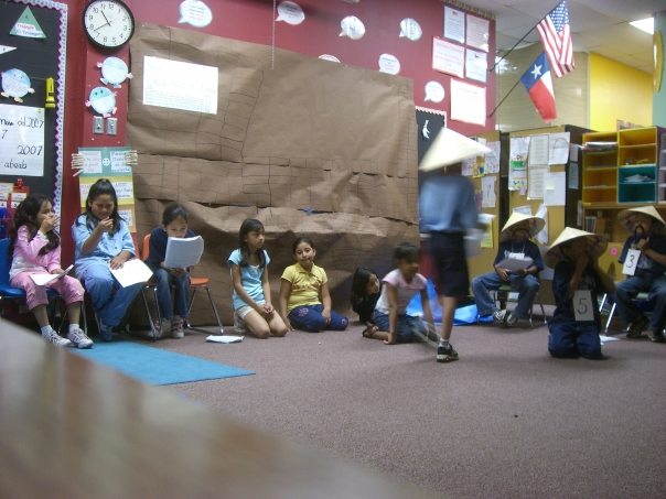 Tracy asked me to come up to her elementary school so that I could shoot some photos and videos of the various grades end of year performances. I had managed to get some asian hats and mustaches from the Oriental Trading company just a few days earlier and of course brought them as a surprise.