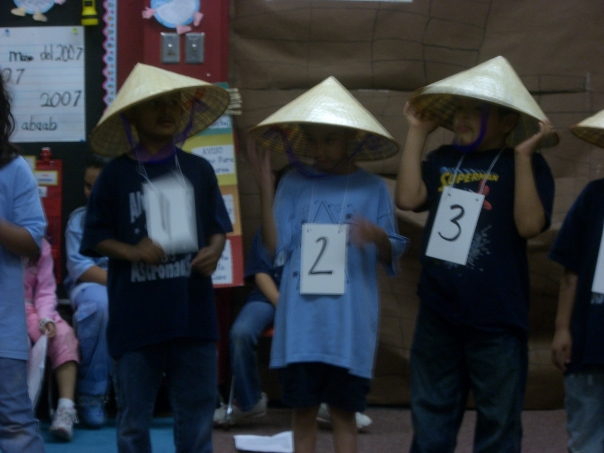 Tracy asked me to come up to her elementary school so that I could shoot some photos and videos of the various grades end of year performances. I had managed to get some asian hats and mustaches from the Oriental Trading company just a few days earlier and of course brought them as a surprise.