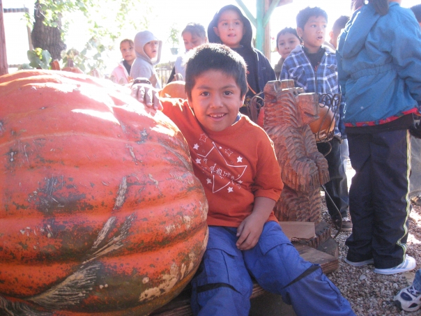 It's funny to see that some of the larger pumpkins are much larger than the kids.