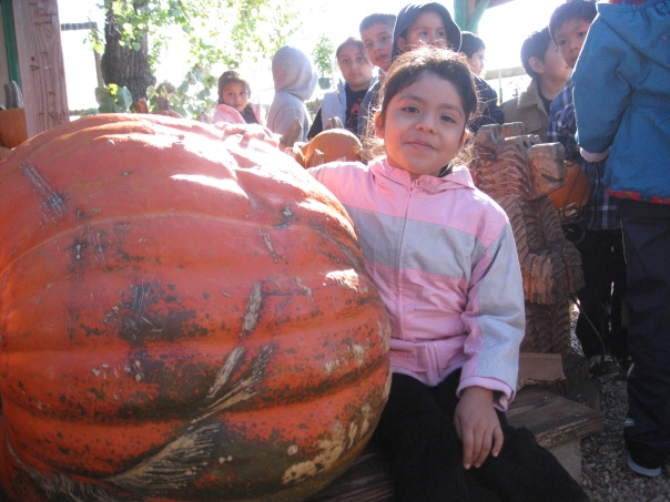 It's funny to see that some of the larger pumpkins are much larger than the kids.