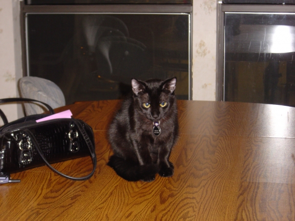 black cat on table