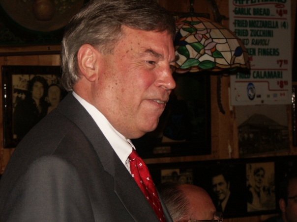 an old white guy at an italian restaurant with a funny smirk
