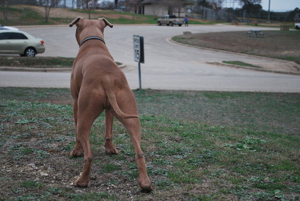the dog watching in outside the dog is body guard |