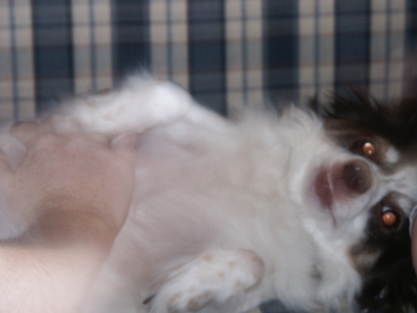 RED EYED DOG GETTING A TUMMY RUB
