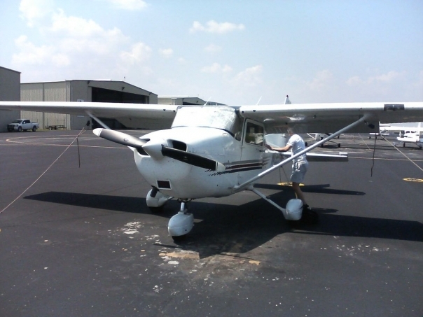 a man properly checking his plane before going to take off