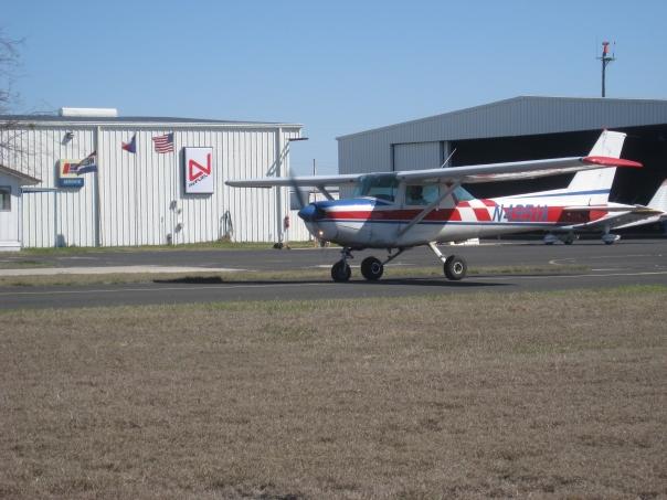 This red, white and blue Cessna sits waiting patiently on it's anxious pilot and his two best friends as they are off to a titillating weekend in jazzy Las Vegas!