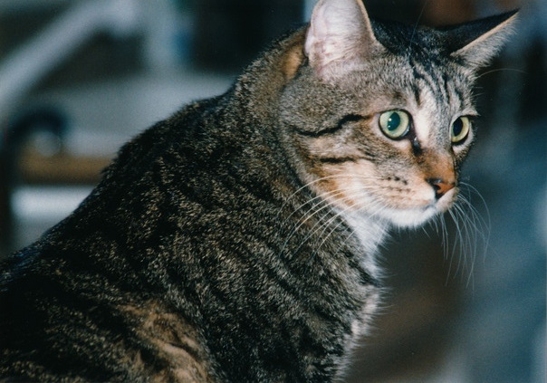 A cat sitting and starring.