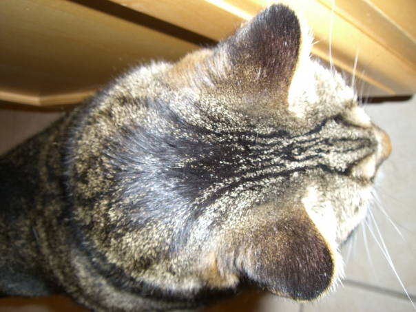 This is a picture of a cat looking at someone or something.