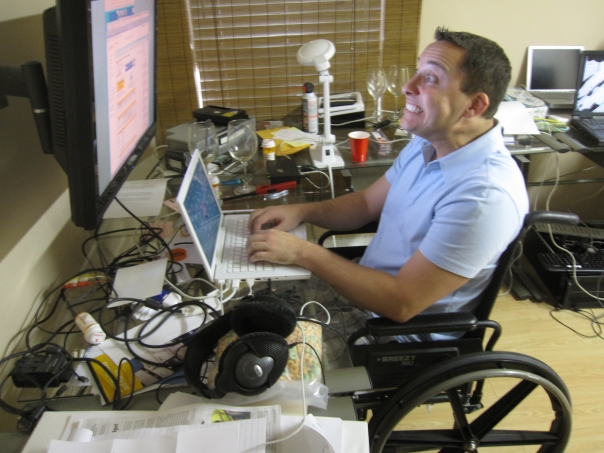 The man in the wheelchair became highly skilled at using his computer and other devices to communicate. |